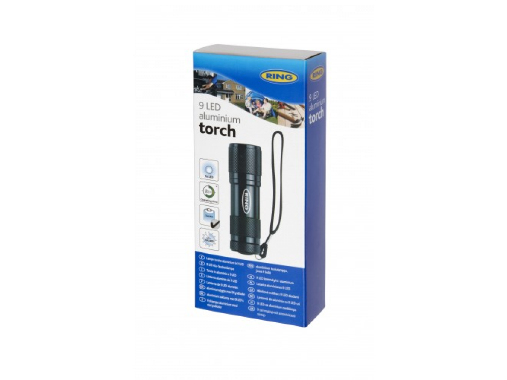 Алюминиевый фонарик Ring 9 LED обеспечивает яркость и безопасность, где бы вы ни находились. Идеально подходит для походов и экстренных случаев.