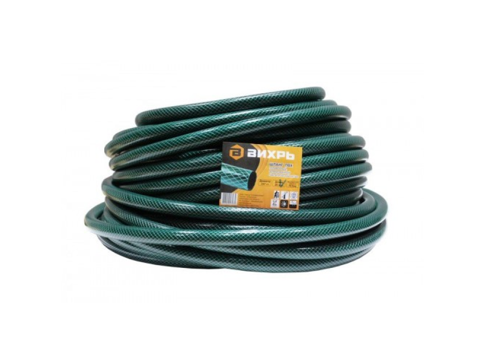 Шланг поливочный ПВХ, трёхслойный армированный Вихрь предназначен для орошения почвы на садовых и парковых участках. Изготовлен из высококачественного ПВХ. Армирован синтетической нитью. Устойчив к воздействию УФ излучения, не подвержен гниению. Отлично сохраняет первоначальную форму, не скручивается. Рабочее давление – 4 бара. Максимальное давление - 10 бар. Диапазон рабочих температур от -10 до +60 °С. Не содержит вредные для окружающей среды вещества.