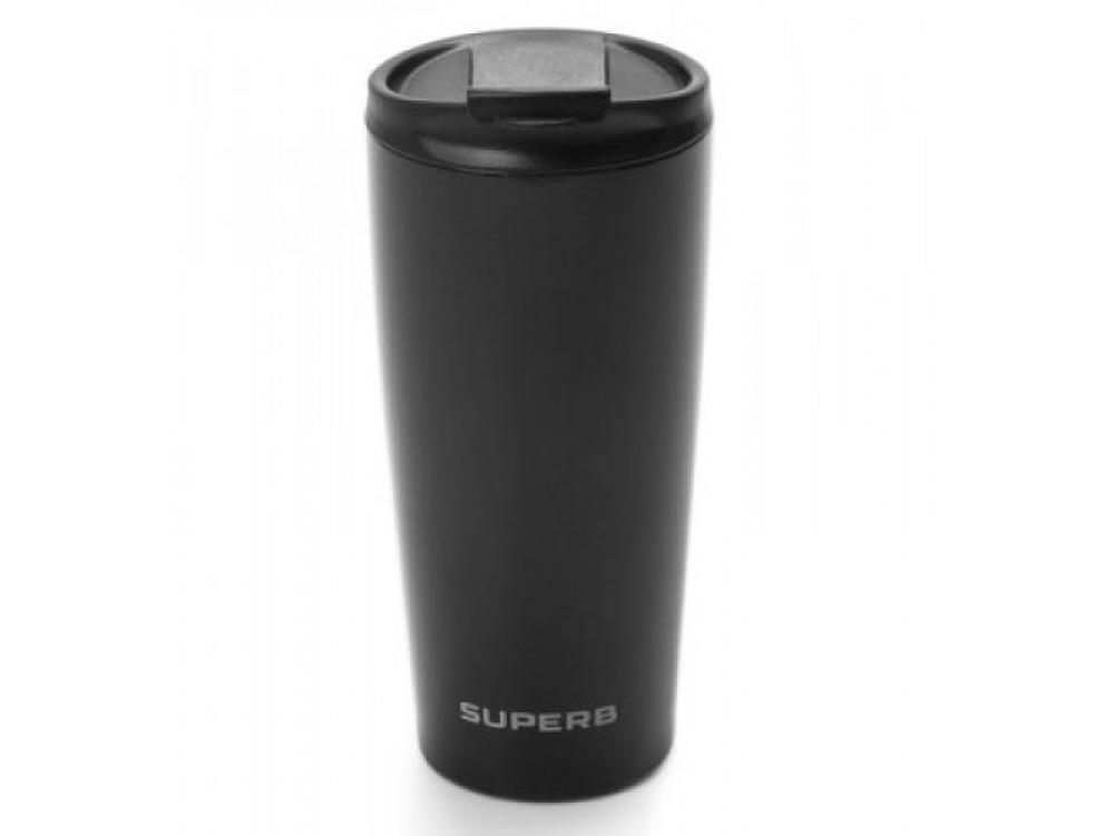 Практичная термокружка Skoda Superb в черном лакированном корпусе из нержавеющей стали. Пластиковая крышка с антипроливной конструкцией. Емкость: 400 мл. Диаметр кружки у основания: 6,5 см., диаметр в верхней части: 8 см. Высота кружки: 18,5 см.