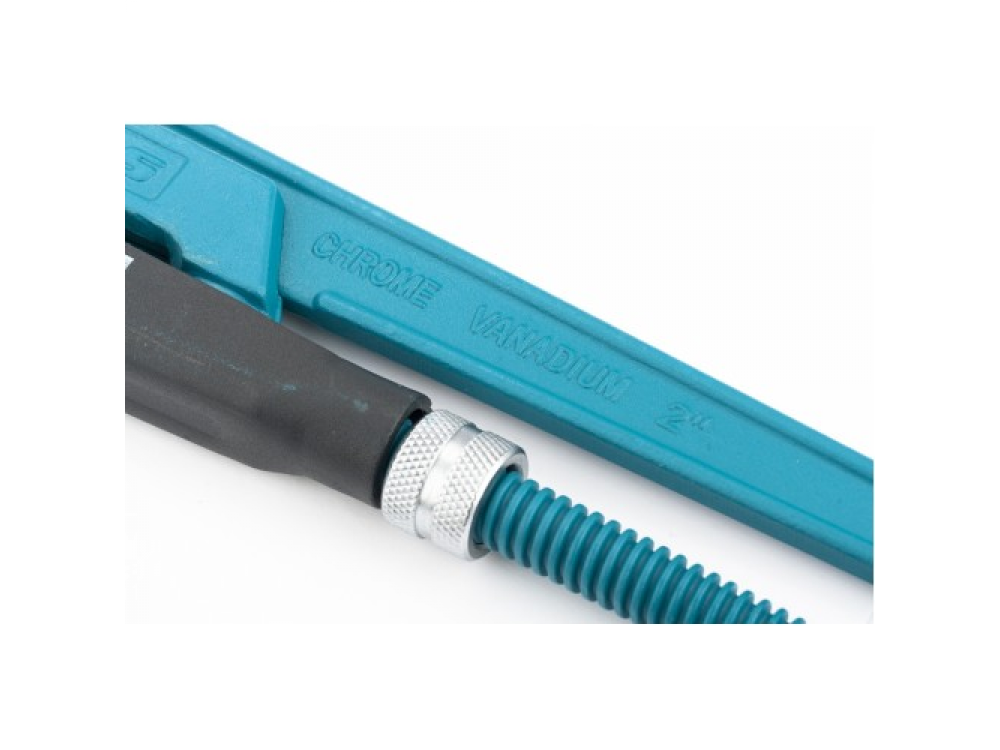 Ключ трубный рычажный типа S усиленной конструкции, применяется при повышенных нагрузках. Предназначен для захватывания и вращения труб и соединительных частей трубопроводов. Изготовлен из высококачественной хромванадиевой стали. Имеет порошковое антикоррозийное покрытие. Губки дополнительно закалены токами высокой частоты до твердости 57–60 HRс. Прогрессивная форма зуба с наклоном против направления вращения обеспечивает самоблокируемый захват деталей. Верхняя ручка имеет выштампованный Т-образный профиль. Регулировочная гайка снабжена стопорным кольцом.