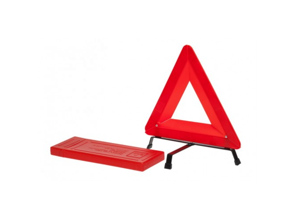 Знак аварийной остановки имеет стандартную треугольную форму и ярко-красный цвет, что делает его заметным на дороге или в местах аварийных ситуаций или ремонтных работ. Внутренняя часть изделия имеет пластиковый состав, что позволяет значительно увеличить срок использования устройства. Для фиксации знака аварийной безопасности предусмотрены специальные ножки из металла, выполненные в черном цвете.